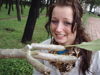 Dette treet var et morsomt tre. Veldig mykt og bøyelig, akkurat som gummi. Lena tøyde grensene litt for mye, og knakk grenen på det hellige treet, rett utenfor det buddhistiske tempelet. Treet gråt hvit melk av smerte. Bad move.